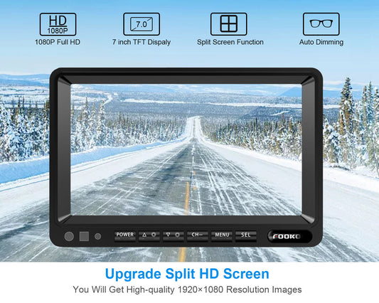Fookoo HD Backup Camera System, 7'' DVR Split Screen Monitor and Waterproof Rear View Cameras with Parking Lines Reversing for RV/Truck/Trailer/Bus/Semi-Trailer/Tractor/5th Wheel Trailer(FHD4)