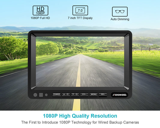 Fookoo Ⅱ HD Wired Backup Camera System Kit, 7 inch 1080P Reversing Monitor IP69 Waterproof Rear View Camera, Sharp CCD Chip, Truck/Trailer/RV (FHD1)