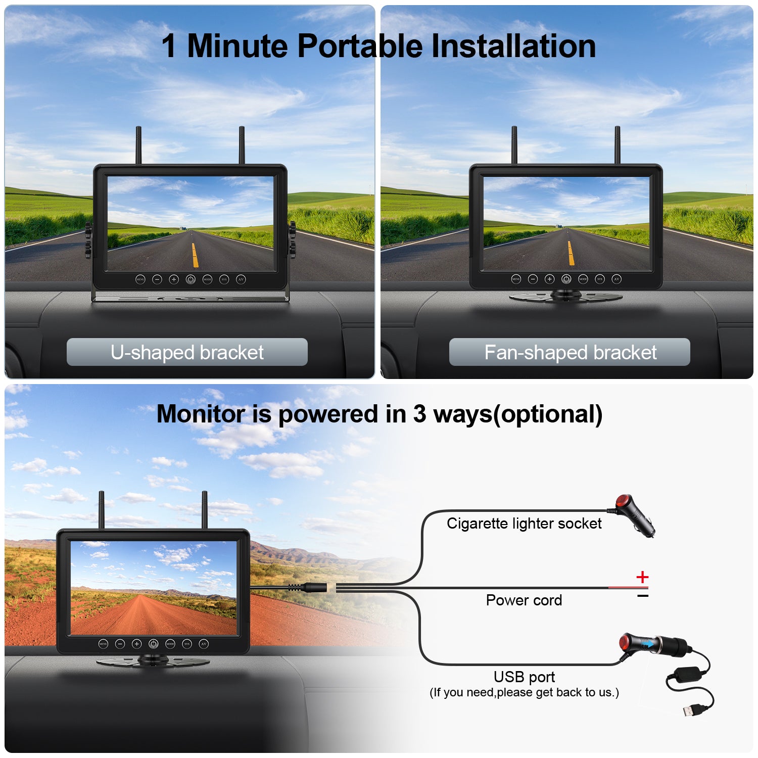 - Dual-antenna & 2.4GHZ Wireless Signal : Utilizing advanced 2.4GHz wireless signal technology and dual antenna design, it provides a more reliable and stable signal with no delay and no lag in images. With a reception range of up to 200ft in the open, it shows you your surroundings in real time, even at high speeds of 102 mph. Suits for car/SUV/camper/truck/voyager RV/jeep truck/pickup/horse trailer/fifth wheel/van/tractor/boat ect.