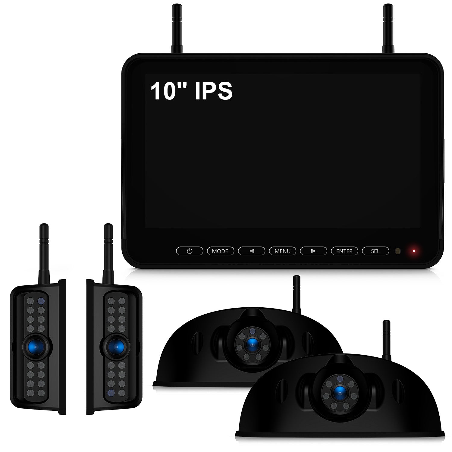 - Quad Split Screen & Full HD Stunning Visuals: 10" IPS monitor provides with crisp images and parking lines. Equipped with touch buttons, a touch of the response, faster and more convenient operation. With auto-dimming, screen will automatically adjust the right brightness, night driving will not be affected. It can support up to 4 cameras for full coverage and display in dual/triple/quad split screen mode.