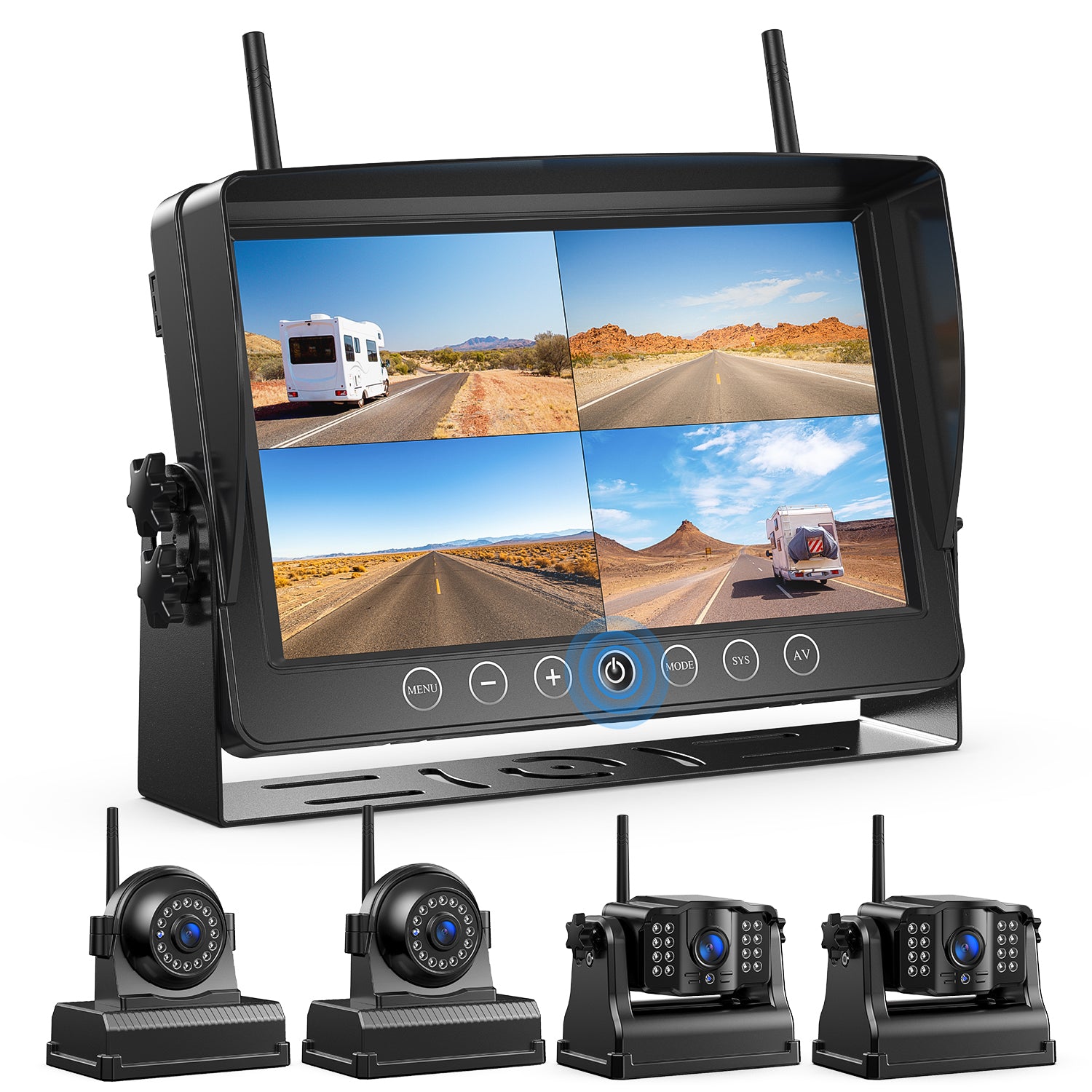 - 1080P 9-inch IPS Monitor & 8 Split-screen Modes : The 9" IPS monitor features a 1080P image processor that allows you to see images in 1920 x 1080 resolution with sharper detail, giving you more confidence and safety when driving and reversing. And it can display two, three and four cameras' image at the same time that reduced blind spots in the field of view.Optionally, you can mount it on the bench with a U-shaped bracket or fan-shaped bracket to suit your mounting needs.